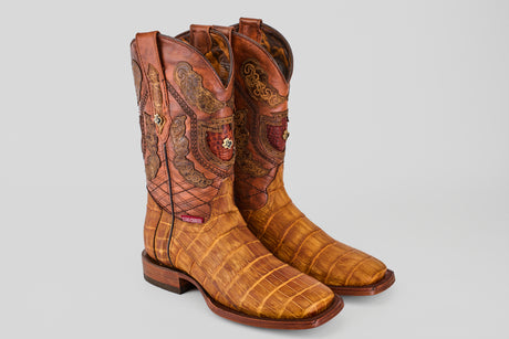 Exotic Caiman Tail - Rustic Cogñac - Square Toe