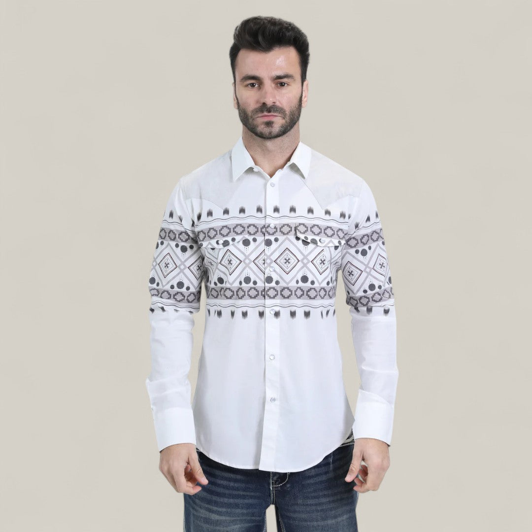 Elevate your wardrobe with our Men’s Western Modern Fit Long Sleeve Shirt. Crafted from a premium cotton/spandex blend, it offers ultimate comfort and flexibility