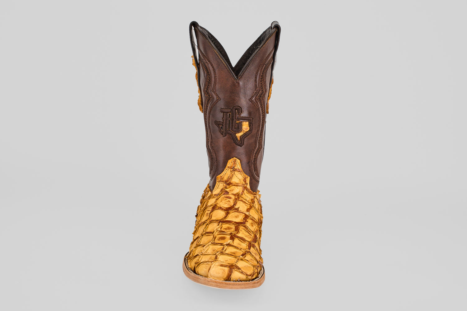 Step into style with the Conor - Canary - Square Toe cowboy boots for men, expertly crafted from unique Pirarucu Fish leather. These boots blend rugged charm with modern flair, making them the perfect choice for your next western adventure or casual outing. Show off your distinctive taste while enjoying the comfort and durability that only high-quality materials can offer