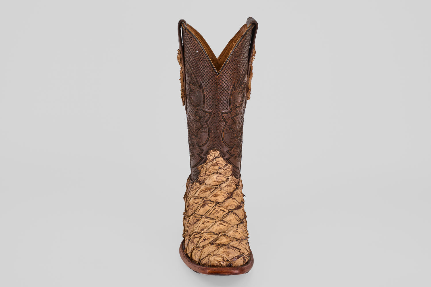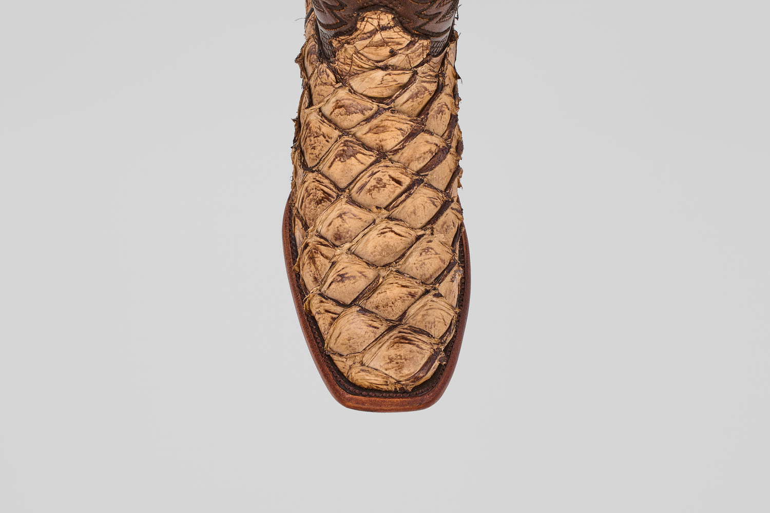 Elevate your style with our stunning Pirarucu Fish boots in sophisticated Matte Orix finish. The narrow square toe design combines modern elegance with exotic luxury. Crafted from premium Pirarucu leather, these boots showcase nature's remarkable patterns while delivering unmatched comfort and distinctive appeal.