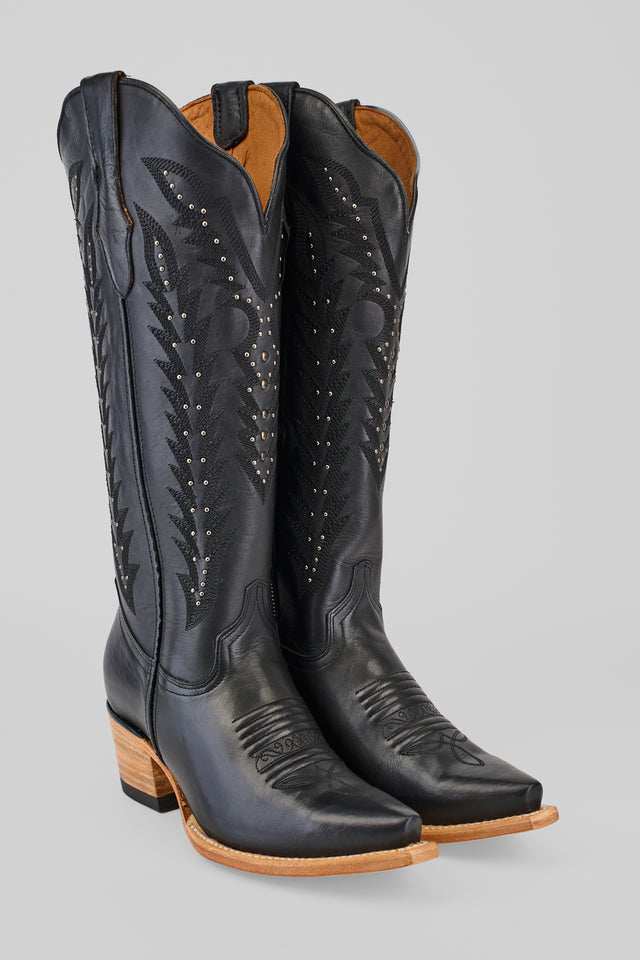 Step into style and comfort with Alana Black's Tall Shaft Snip Toe Boots